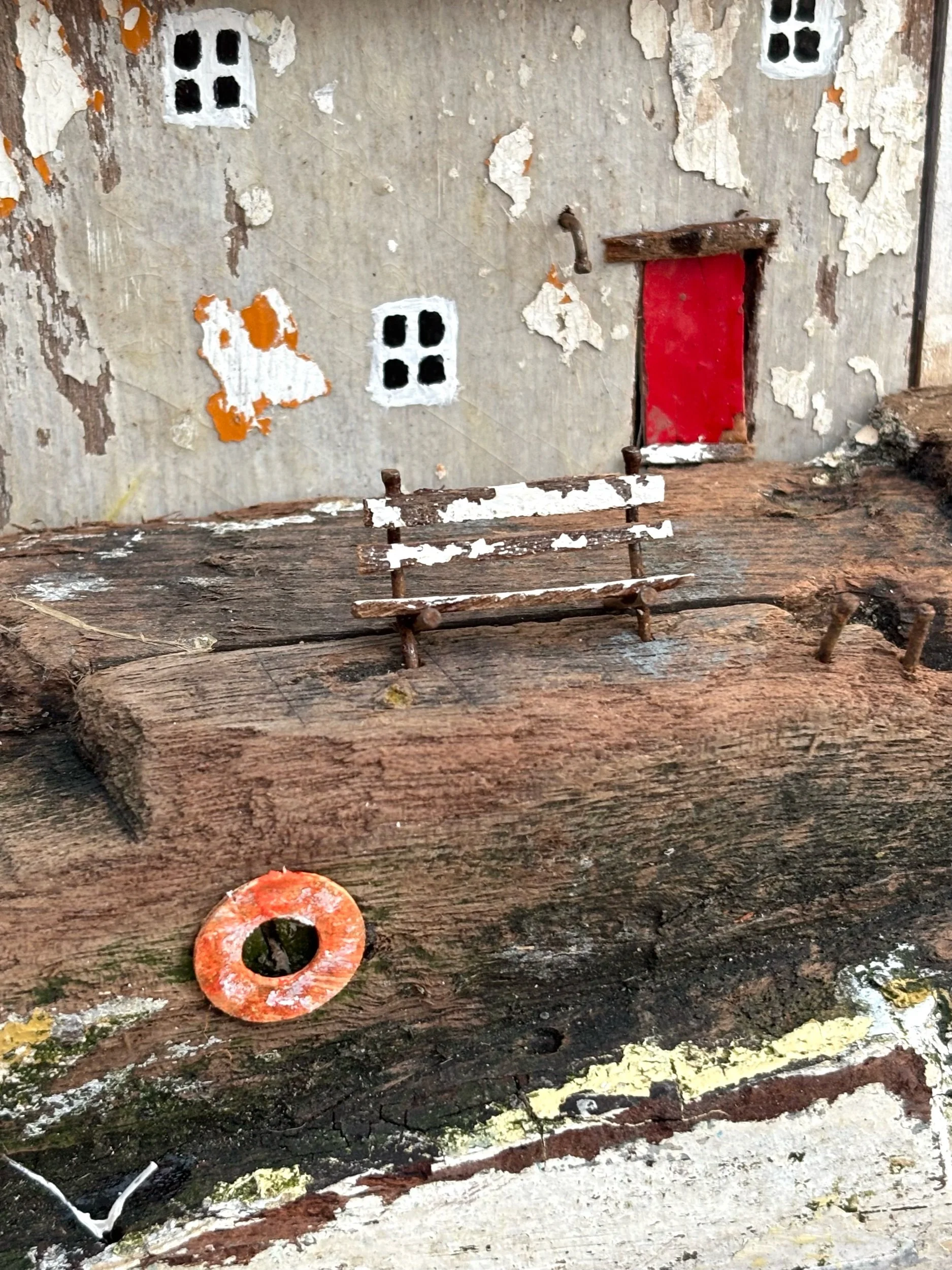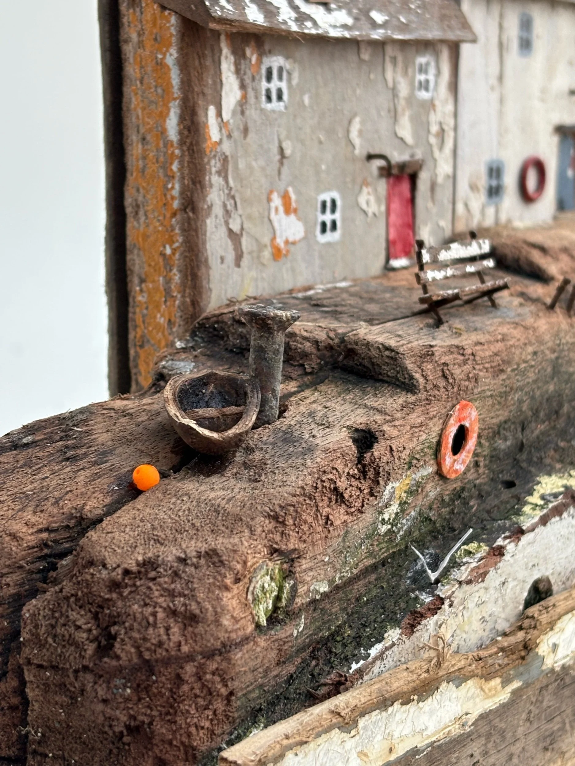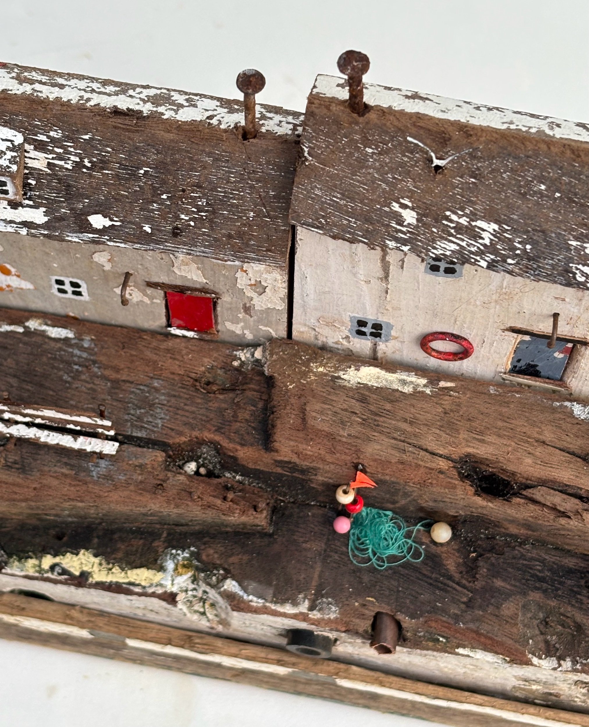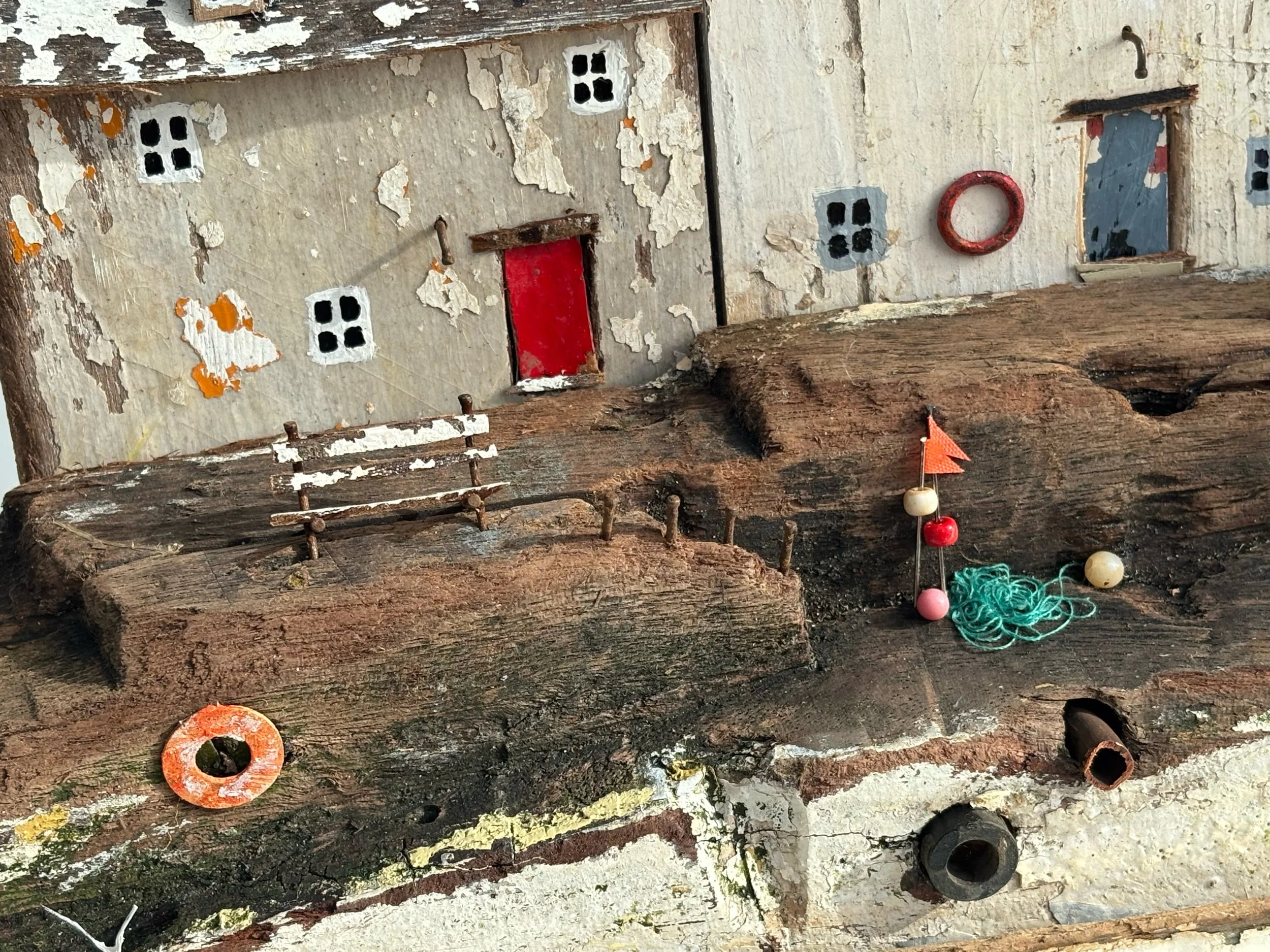 Beautiful seaside scene made from driftwood and other reclaimed materials.