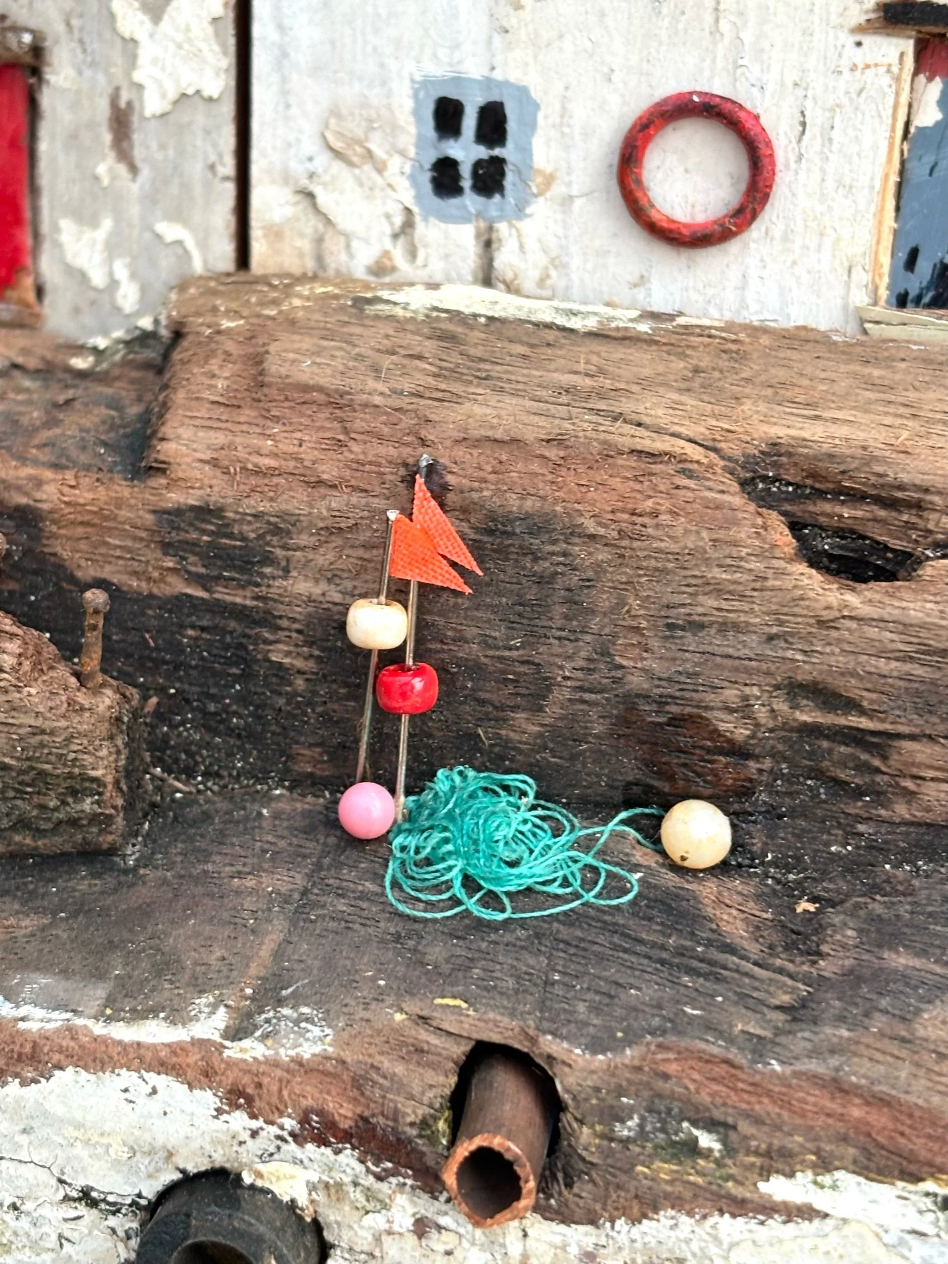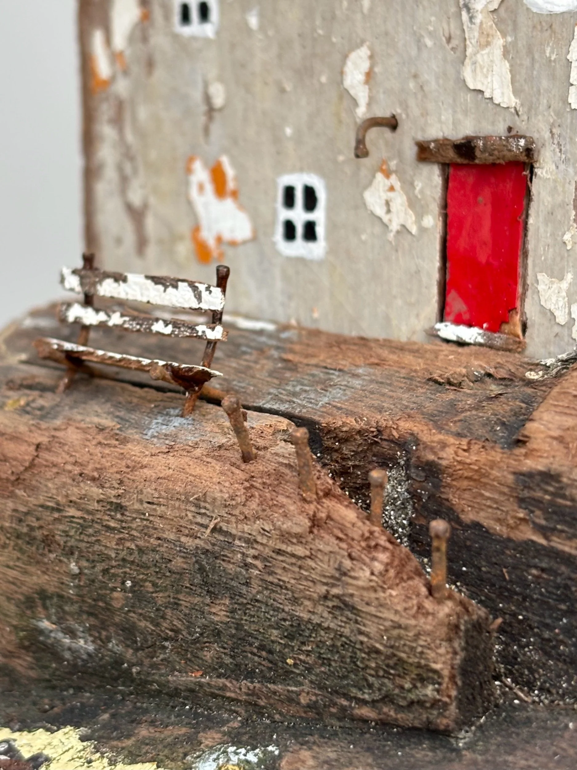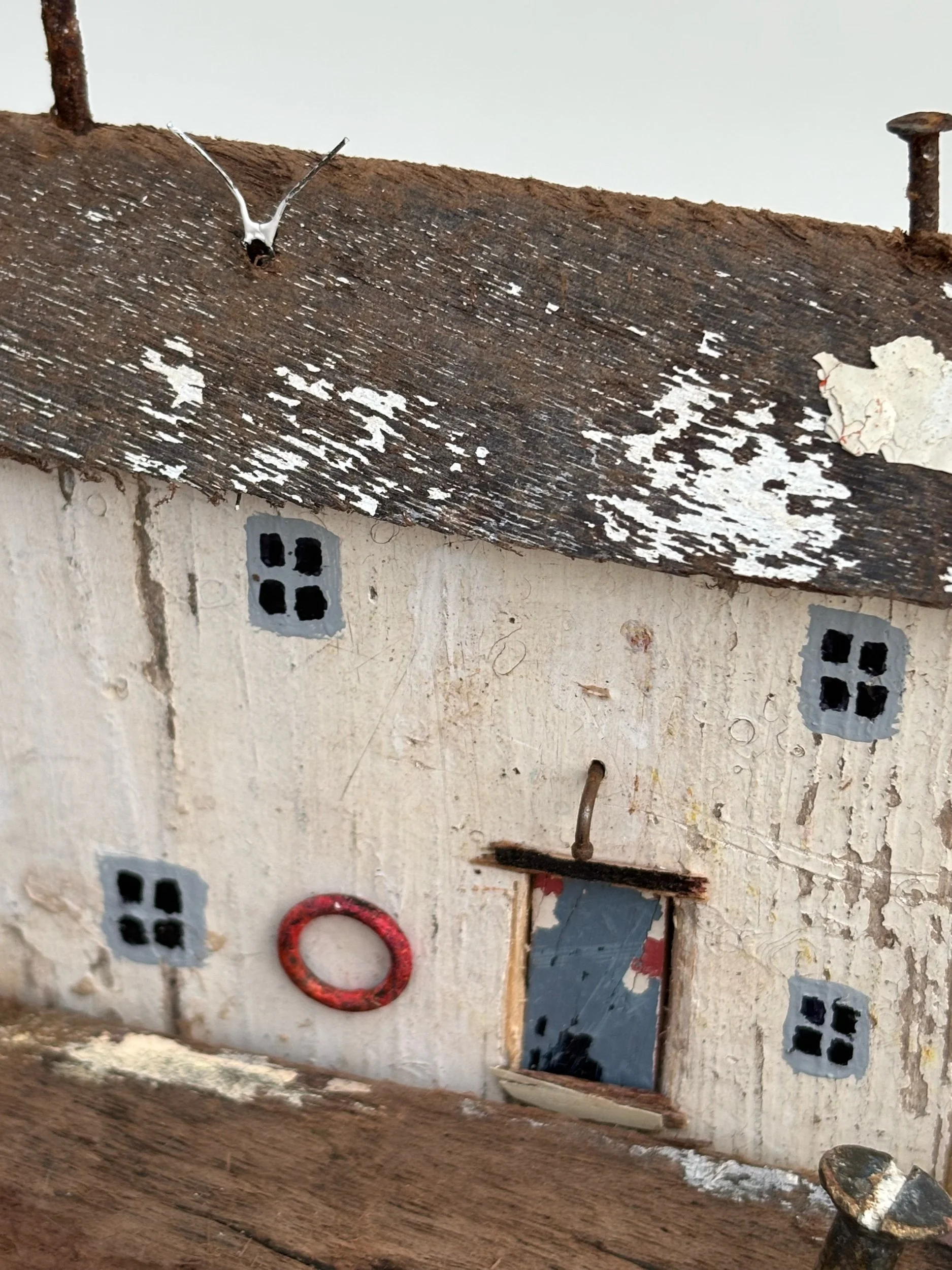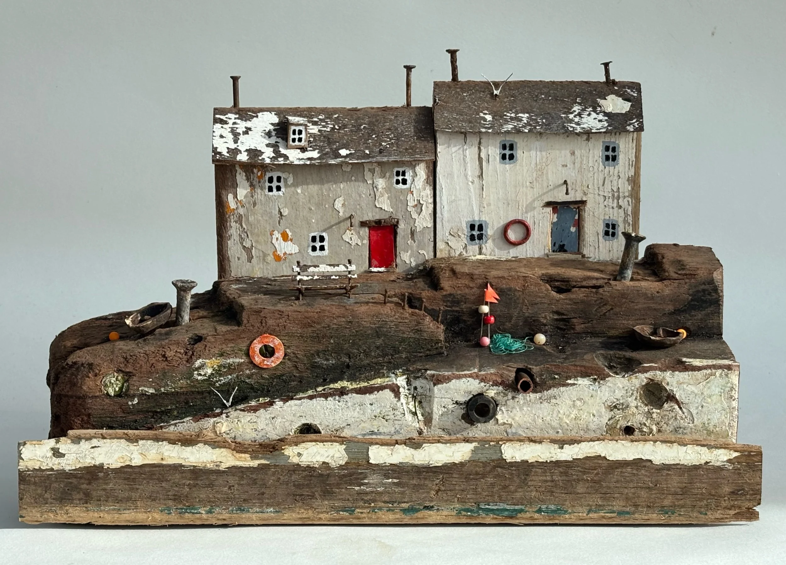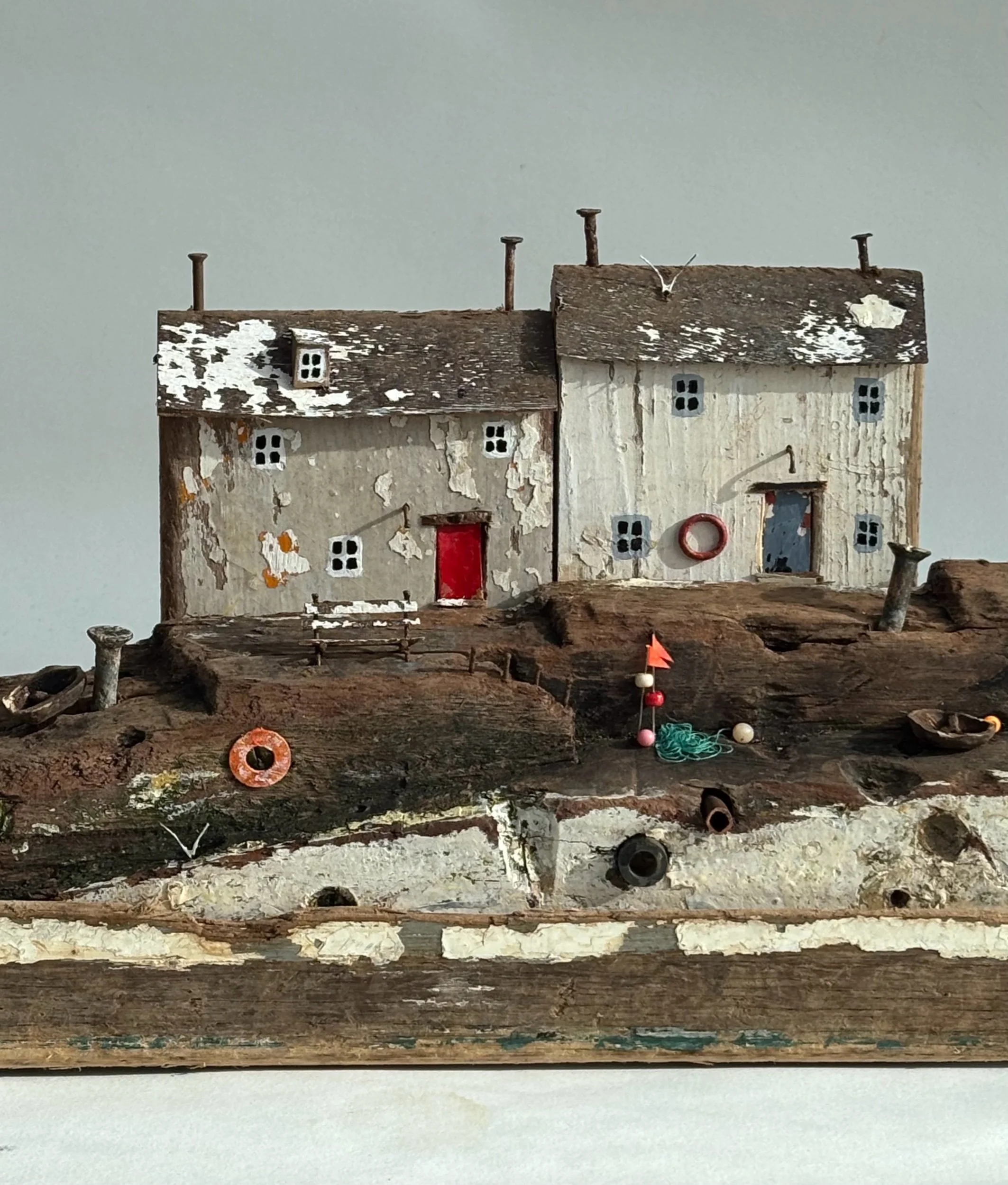 Beautiful seaside scene made from driftwood and other reclaimed materials.
