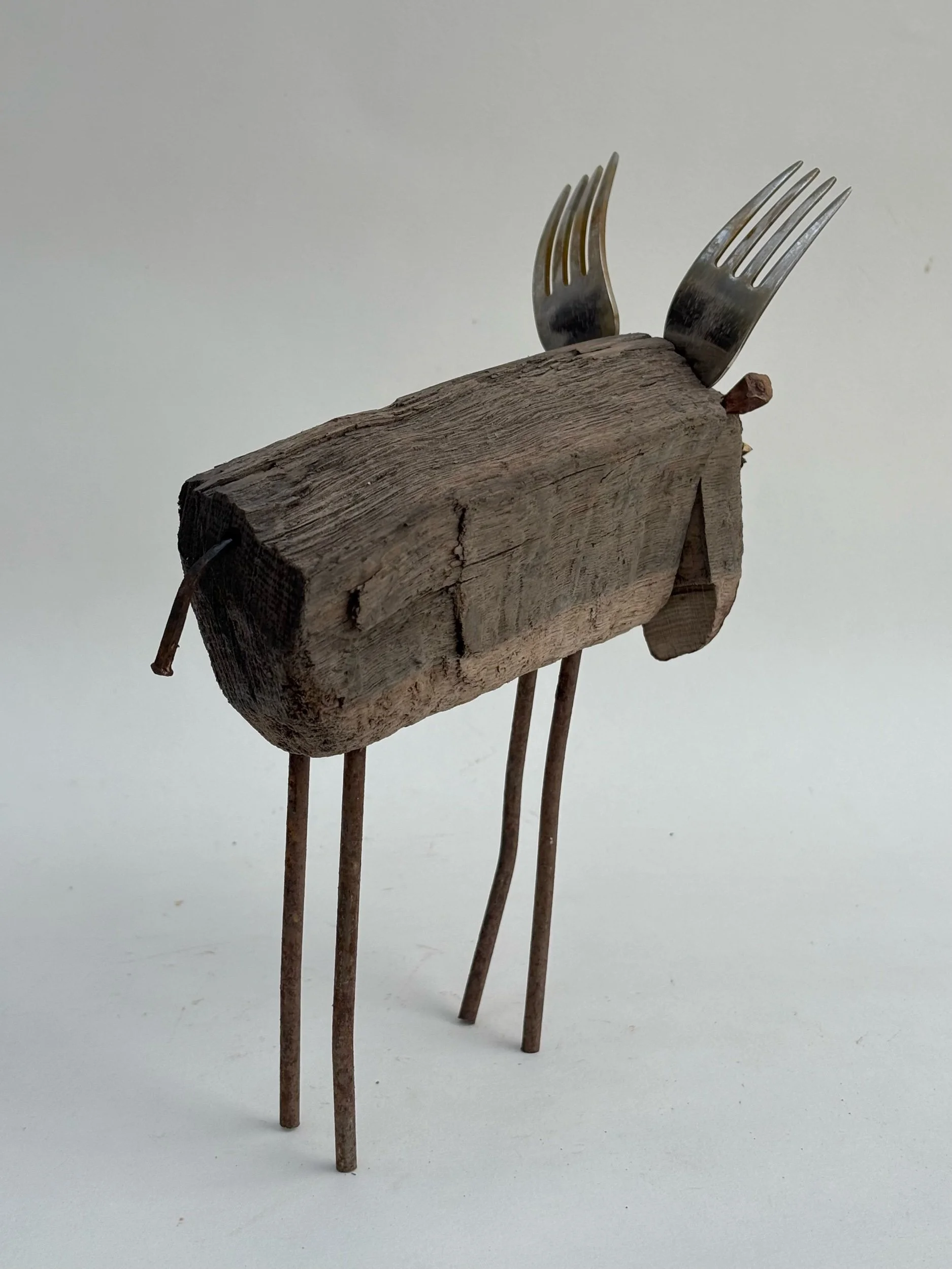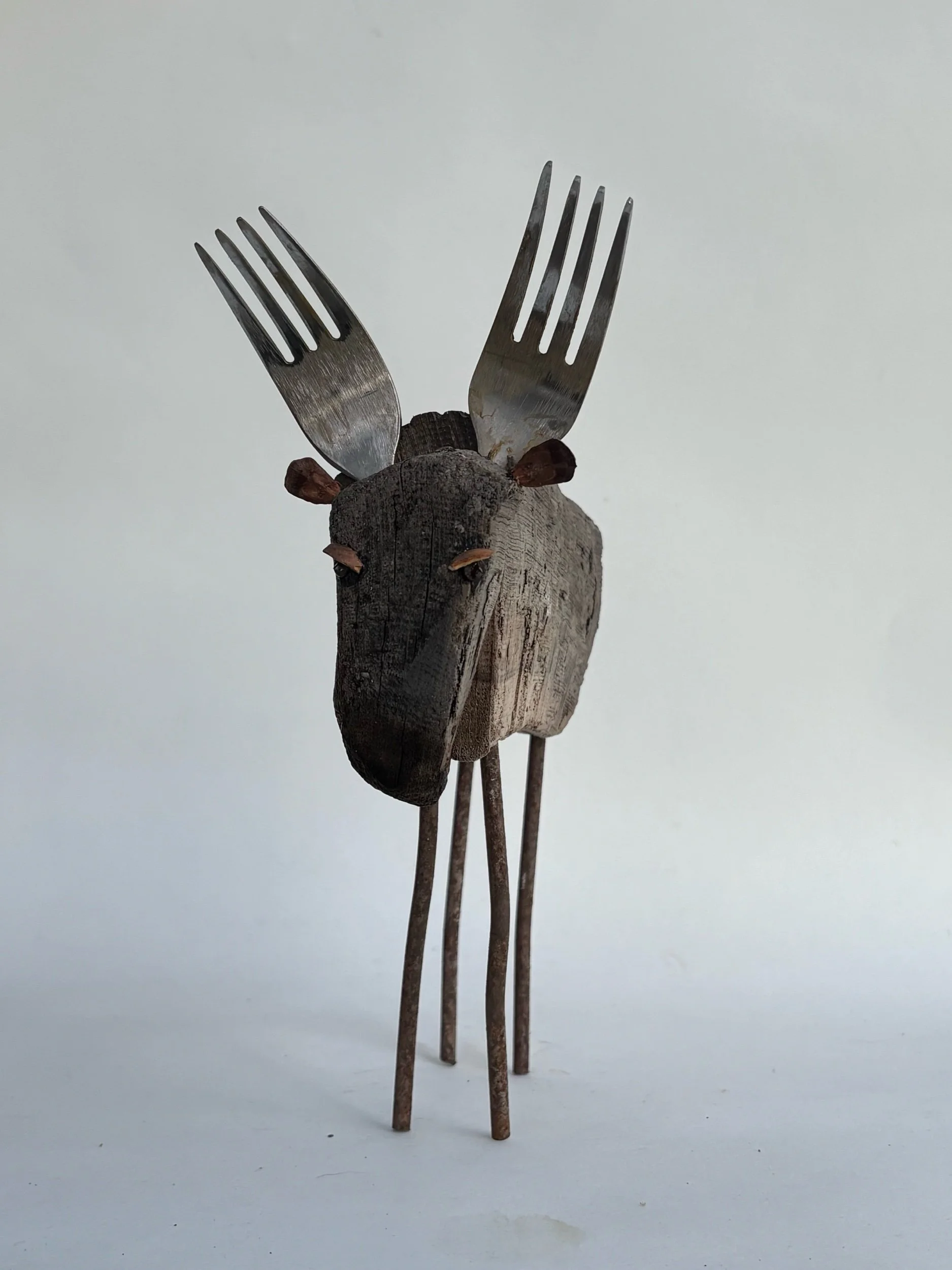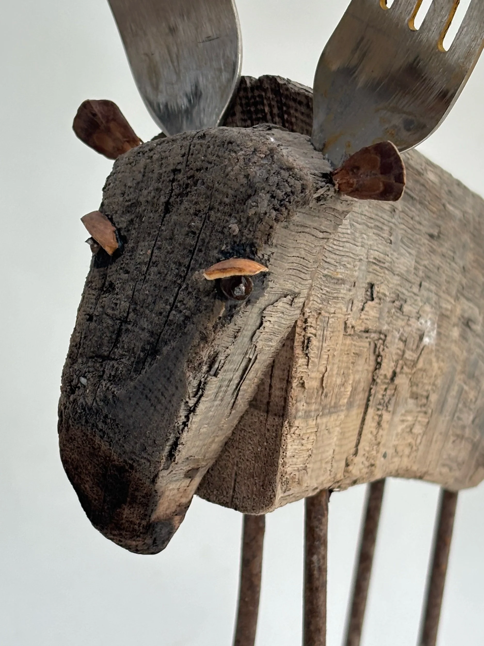 Wonderful moose made from driftwood and reclaimed materials (including fork antlers).