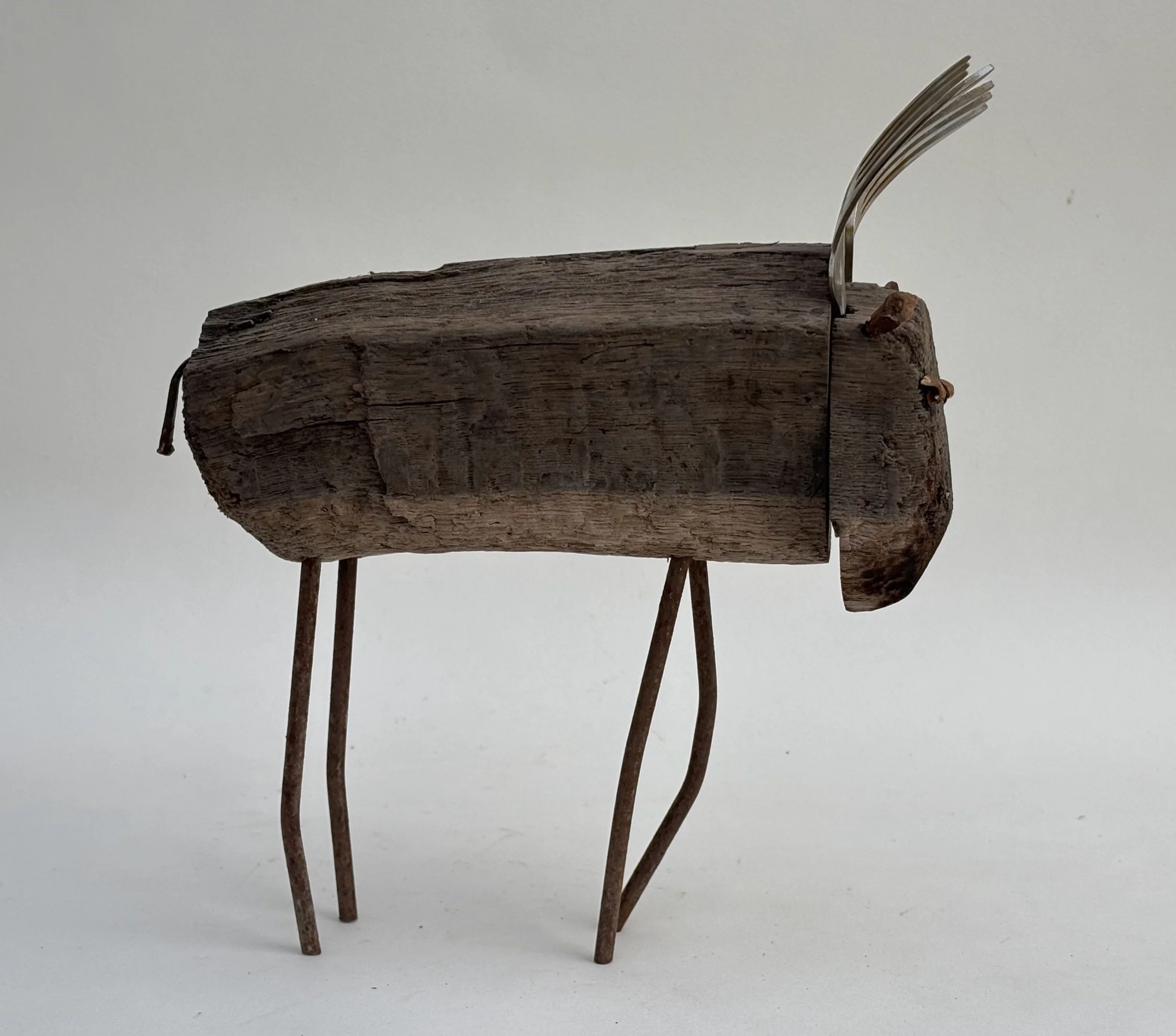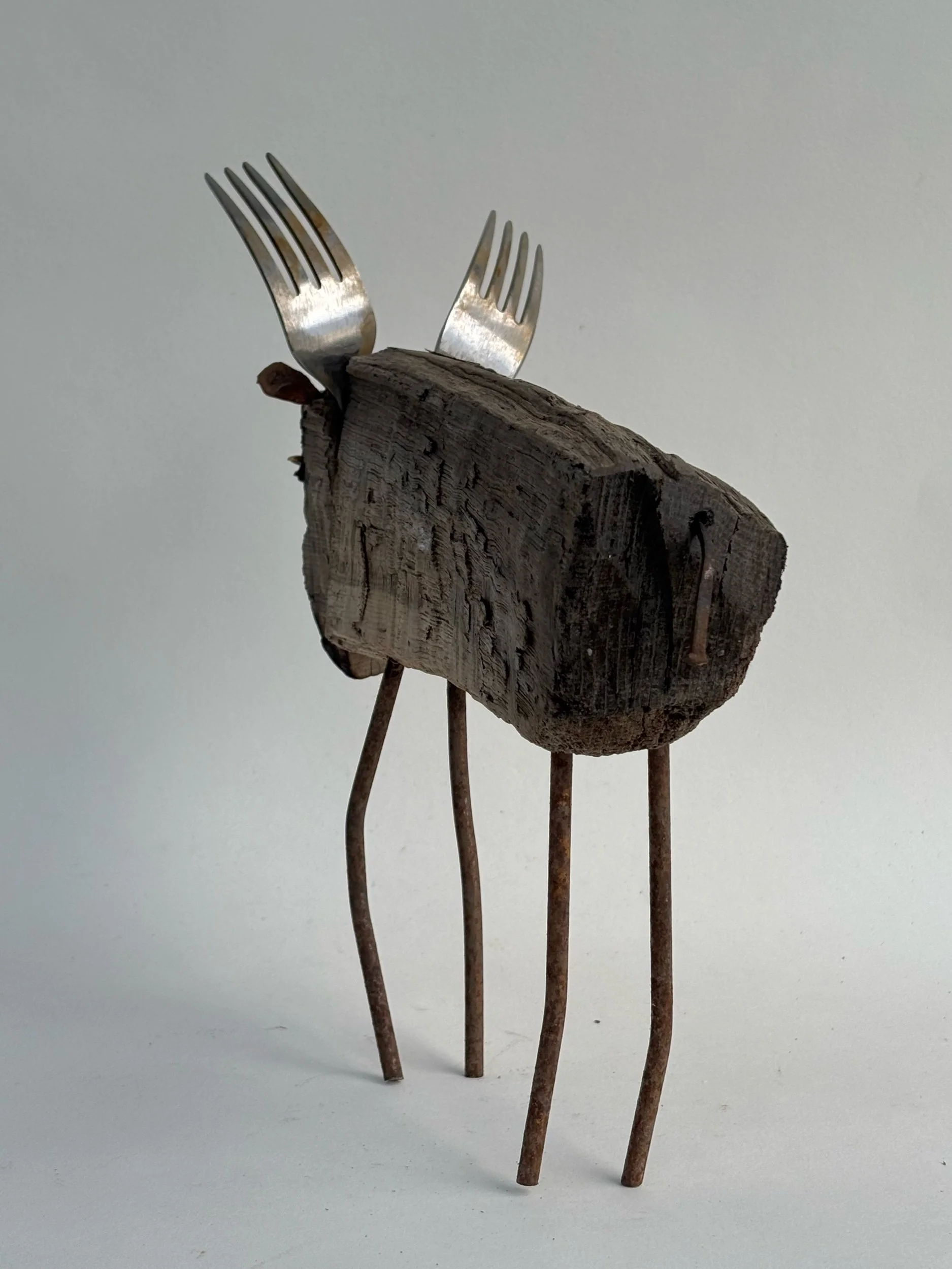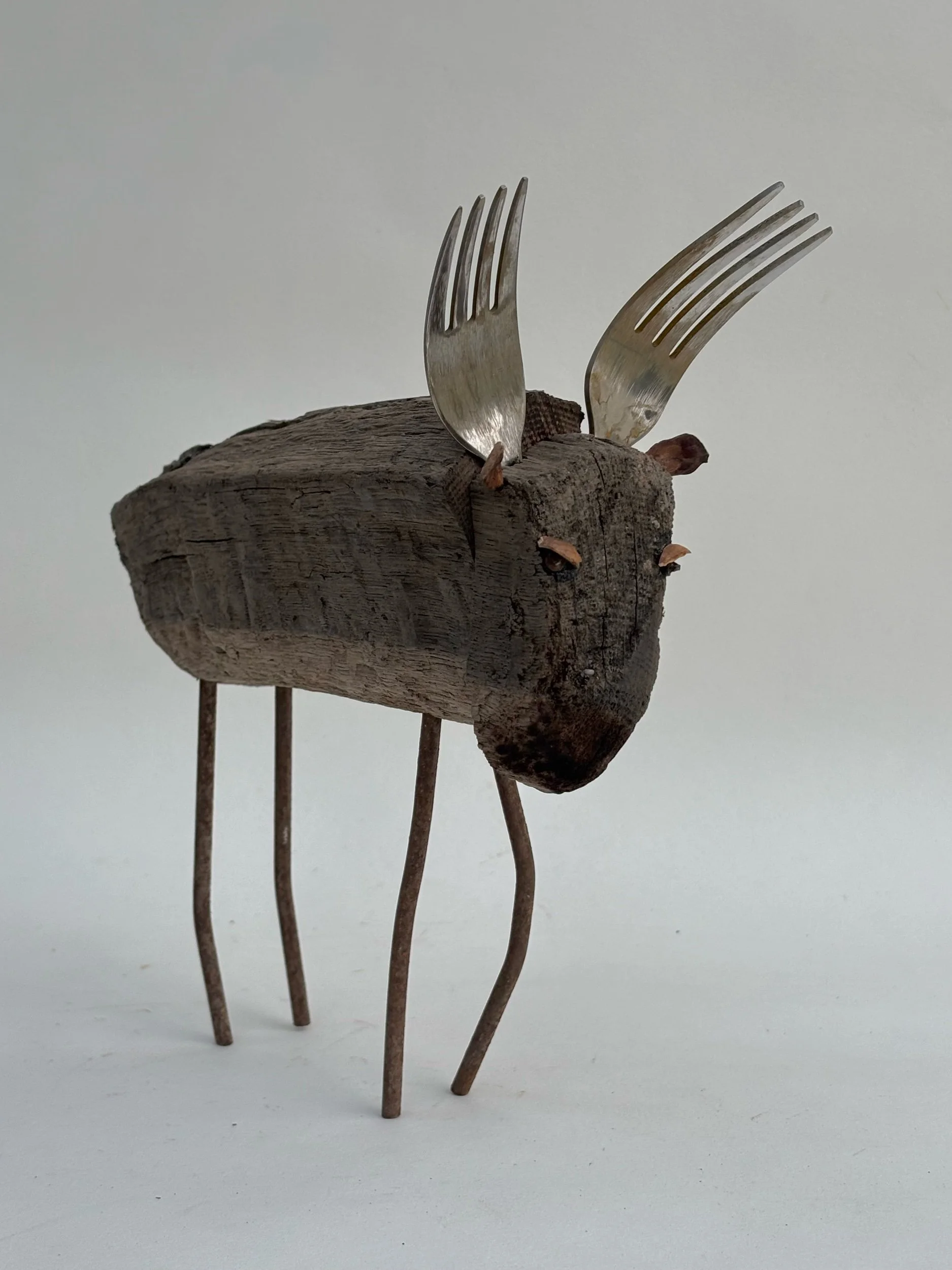 Wonderful moose made from driftwood and reclaimed materials (including fork antlers).