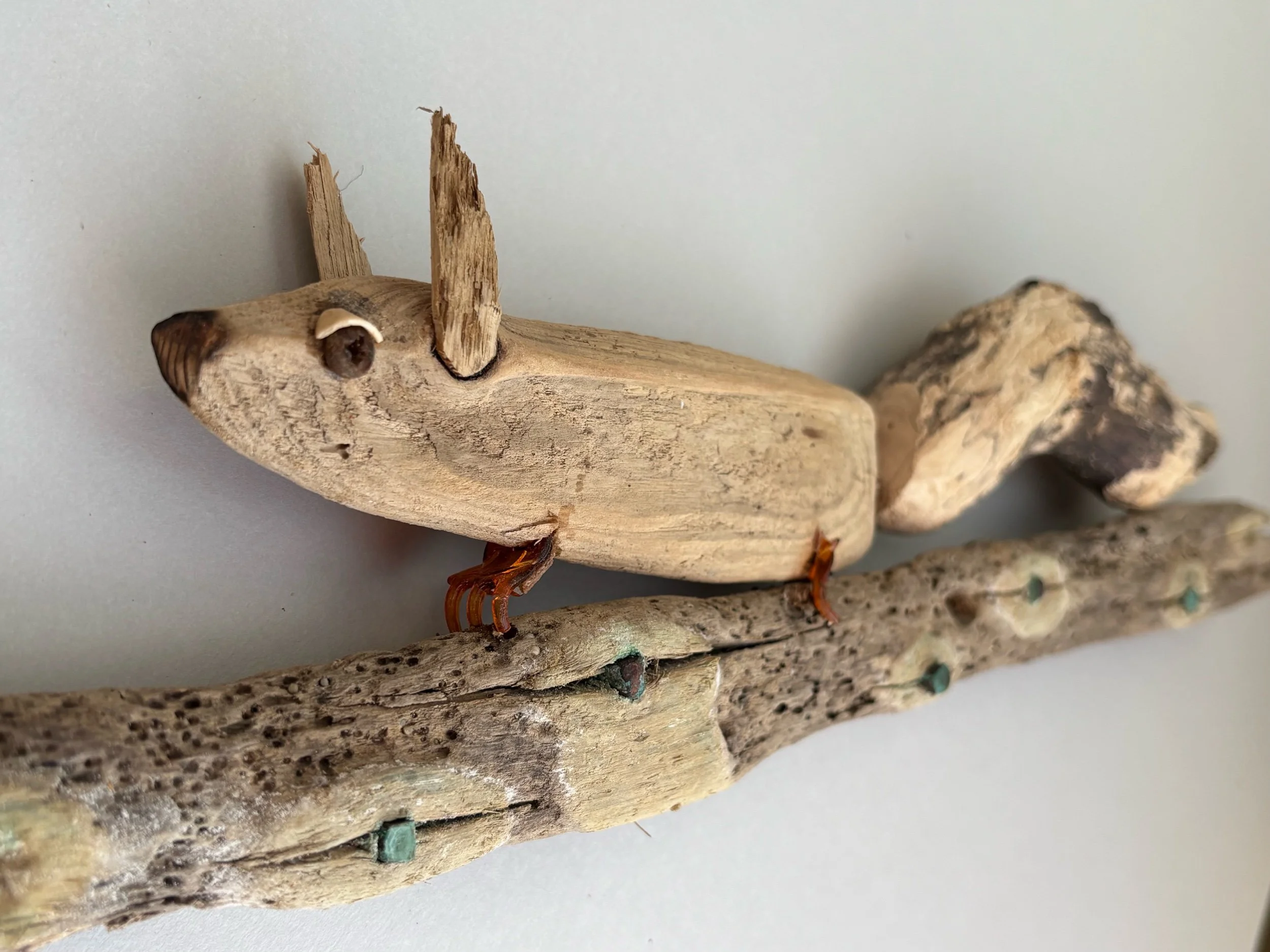 Made from driftwood (including the lovely tree piece which is embedded with copper nails)