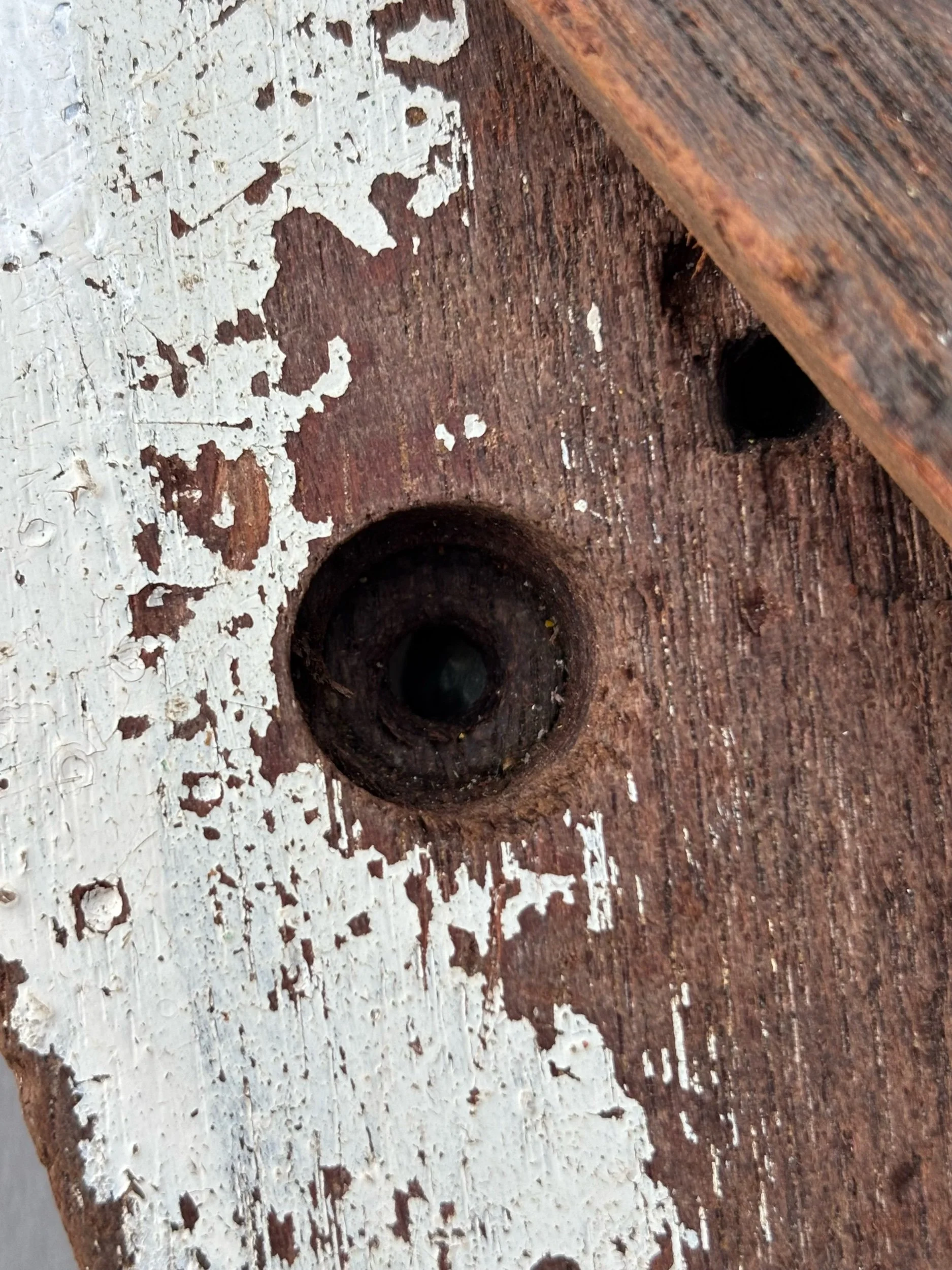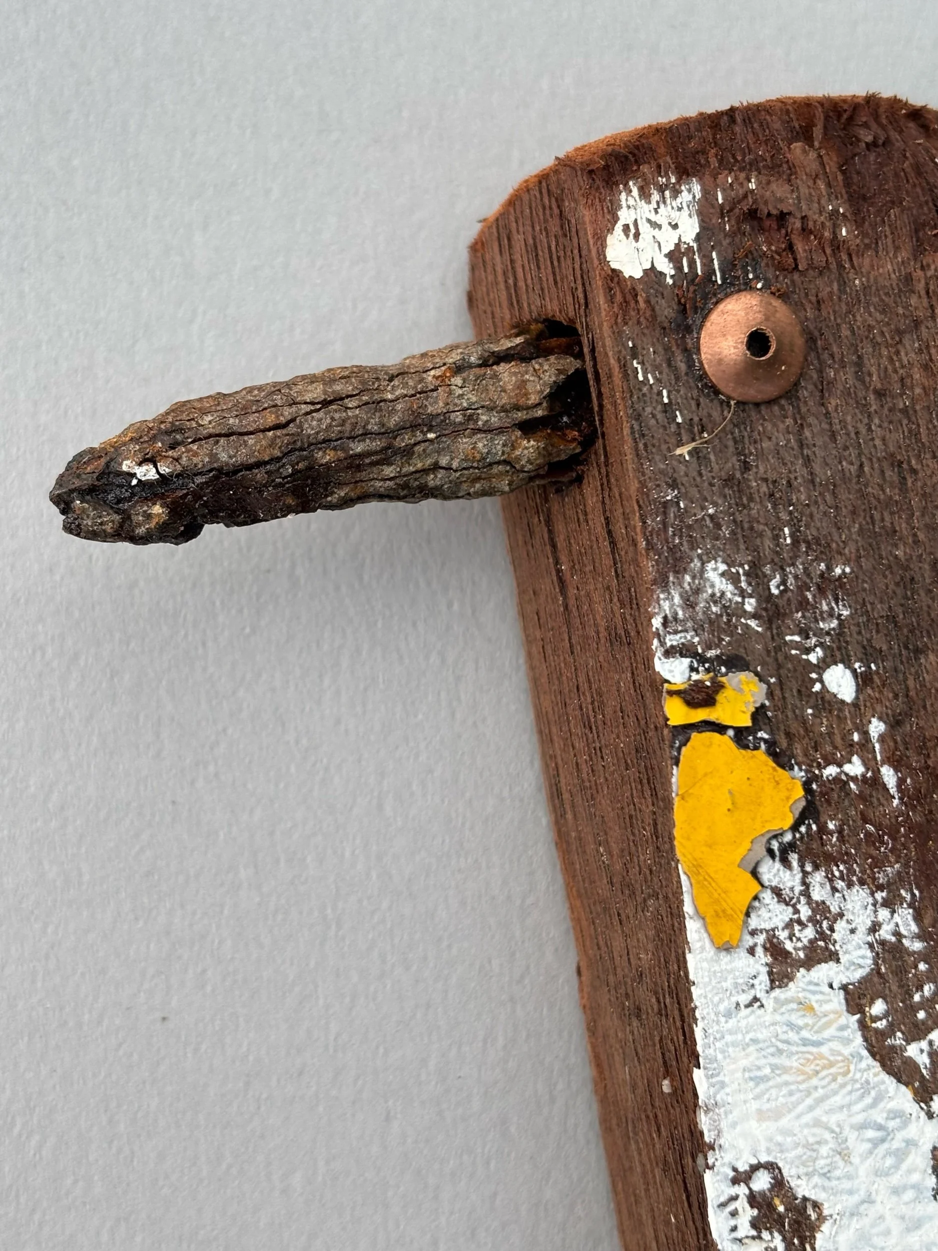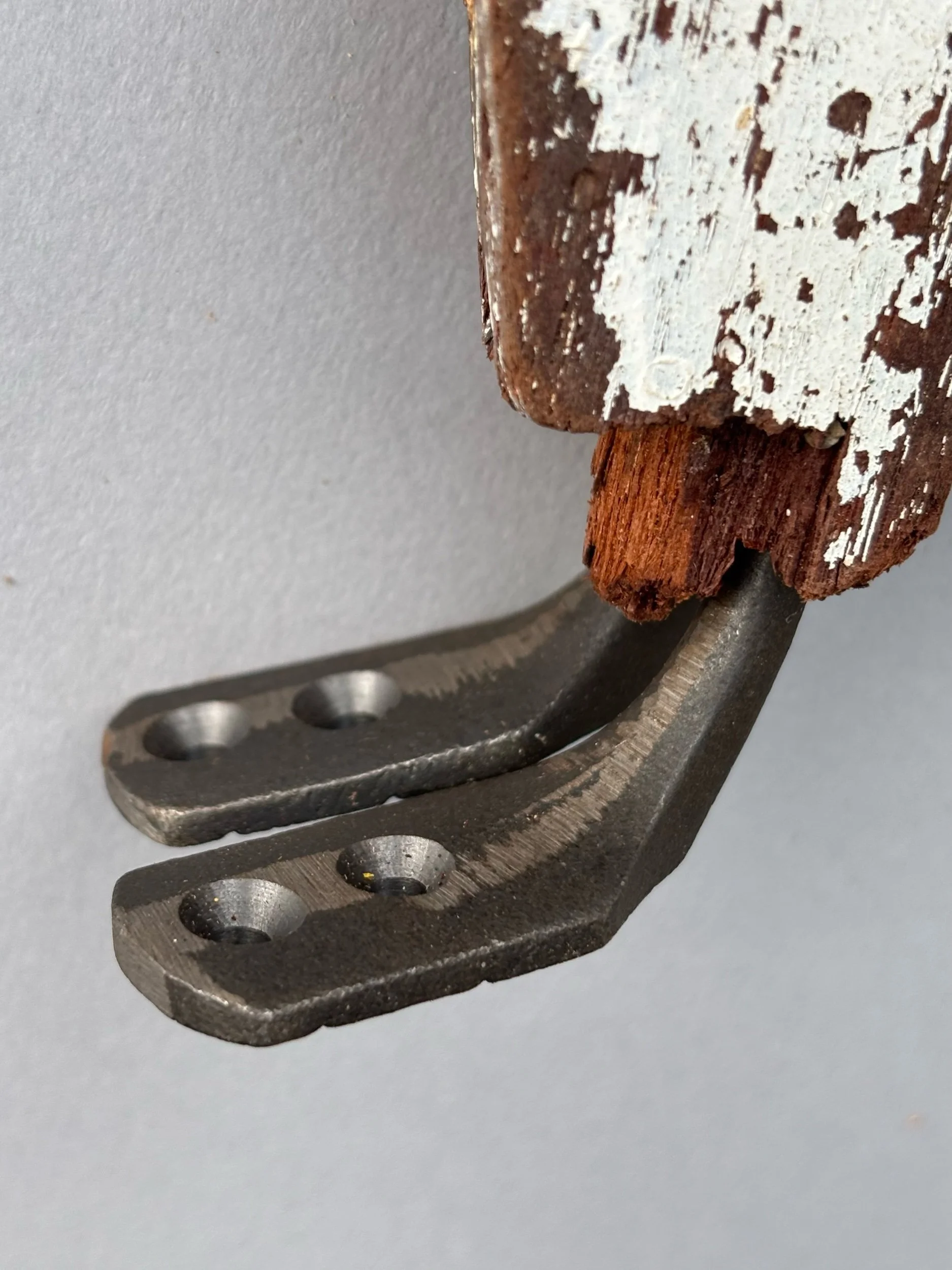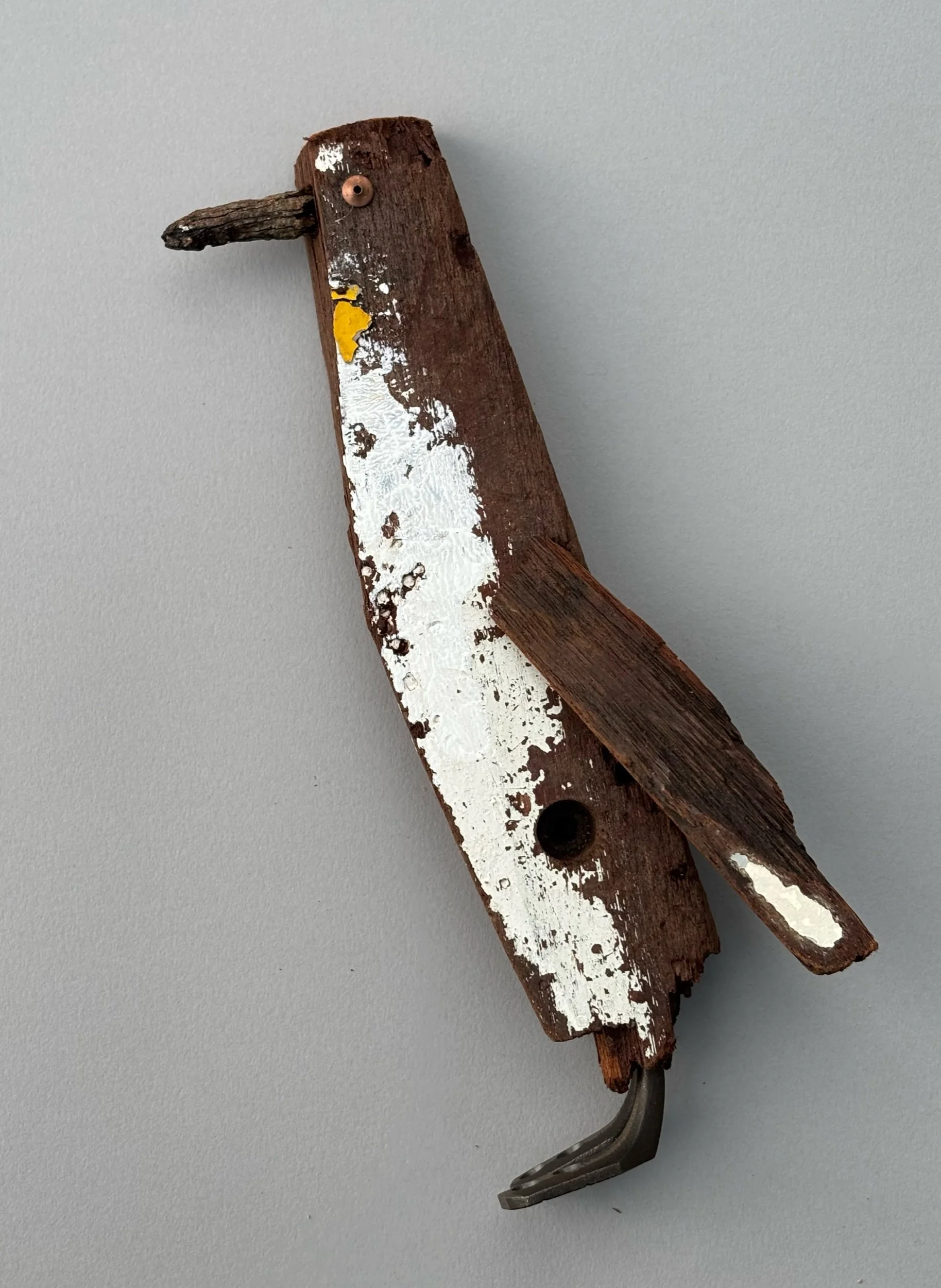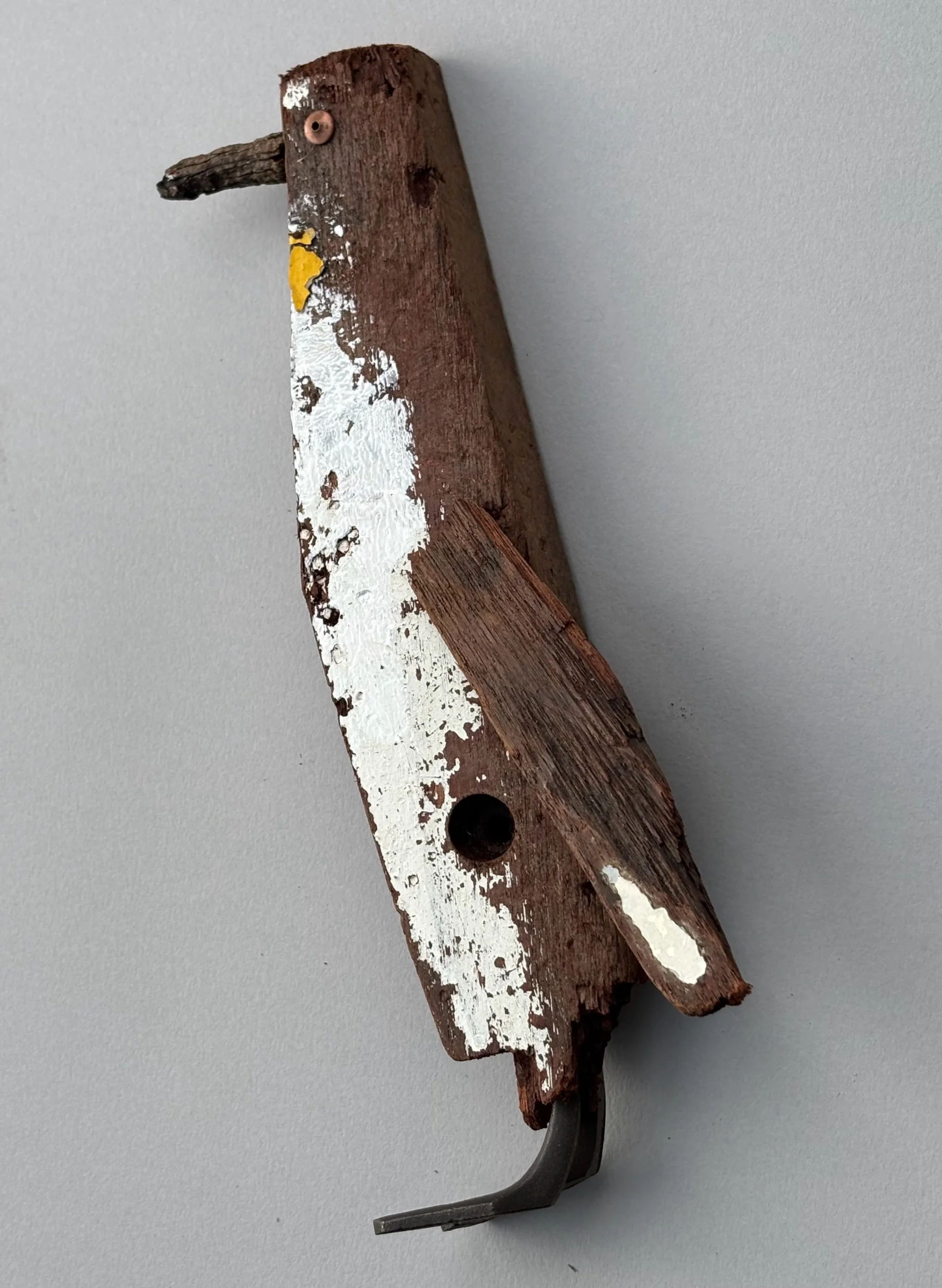Lars the penguin is made from driftwood with a rusty metal beak and metal clothes hooks for feet. I think his body was probably part of a boat, as it’s made from hardwood and has a hole with recess where a rivet may have been.