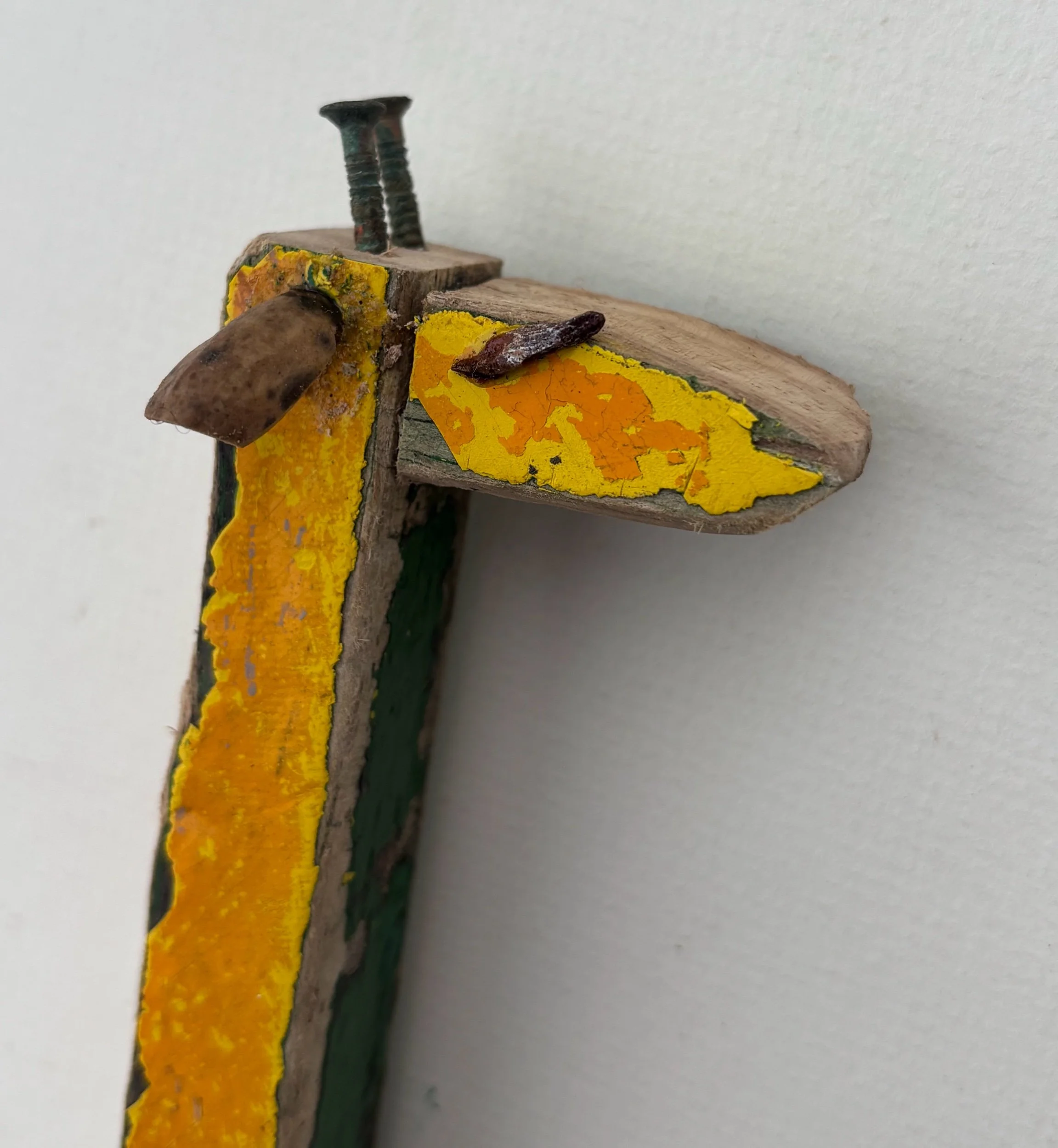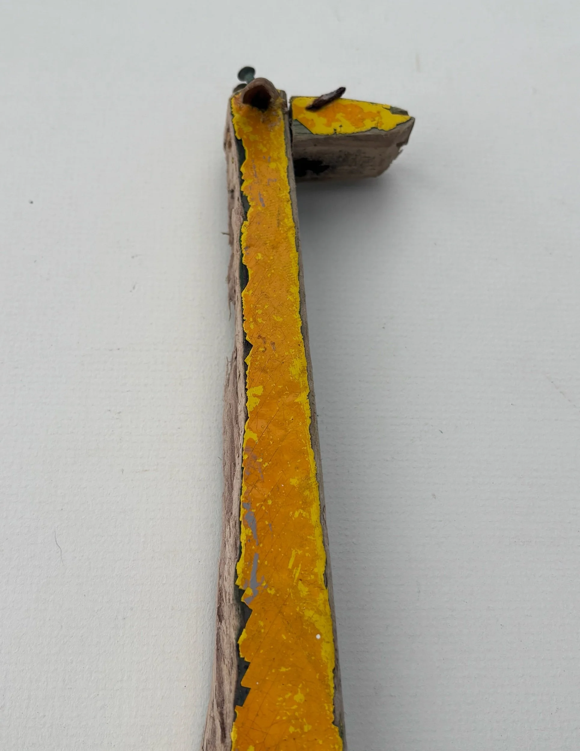 I found this beautiful deep yellow fragment of wood (from a washed up chair!) just a few days ago and it was meant to be!
