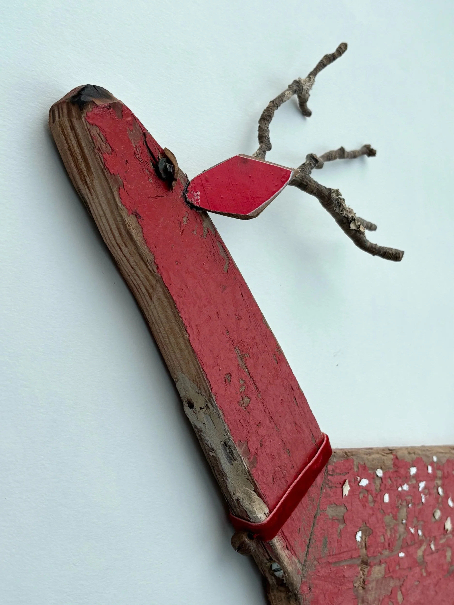 This elegant creature is made from a piece of red painted driftwood I found recently.